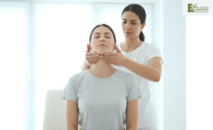 Physical-therapist-helping-patient-with-TMJ-jaw-exercises-in-Sunnyvale-clinic